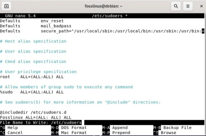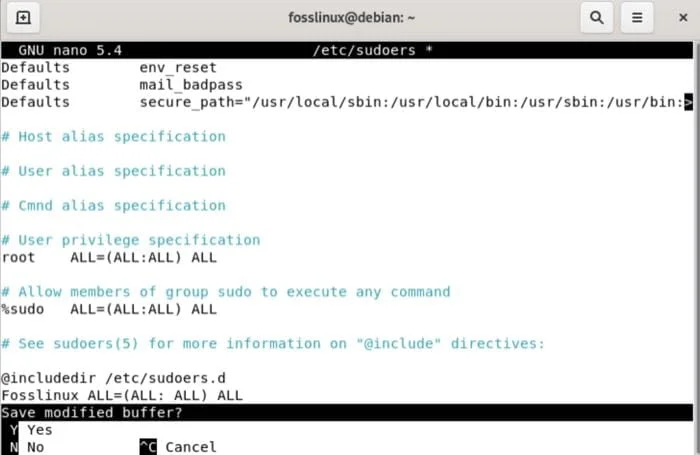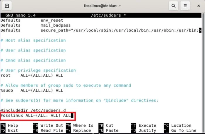 In our case, we will give the user “Fosslinux” su rights. As such you should enter this command: