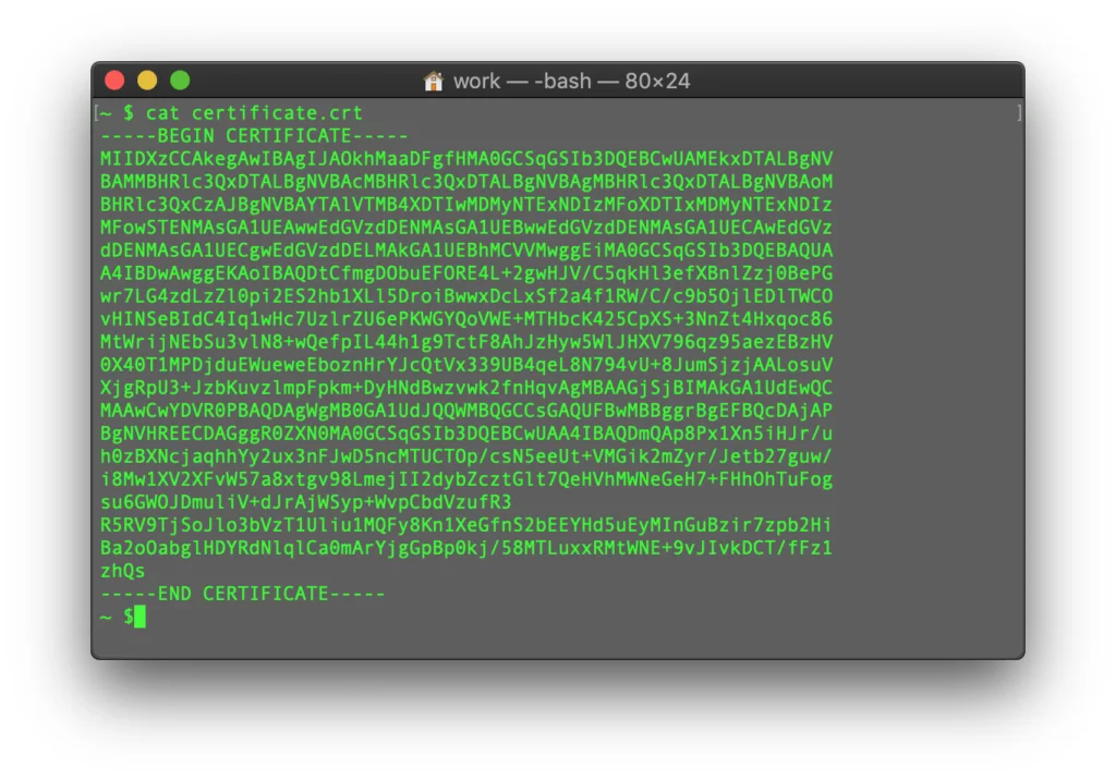 When the command is entered, paste the certificate code into the terminal/SSH client.