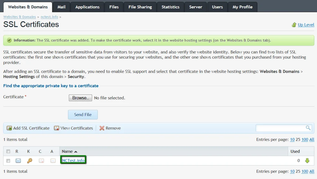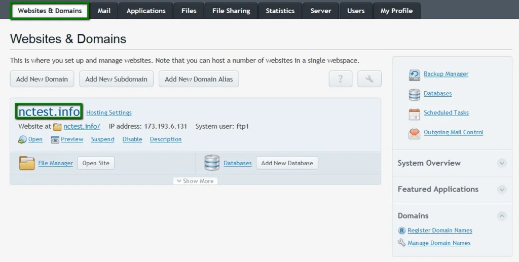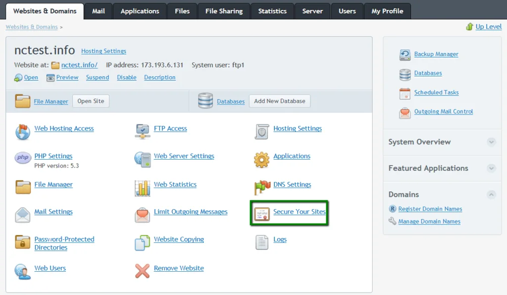 Go to the Websites & Domains tab and select the domain you want to secure.