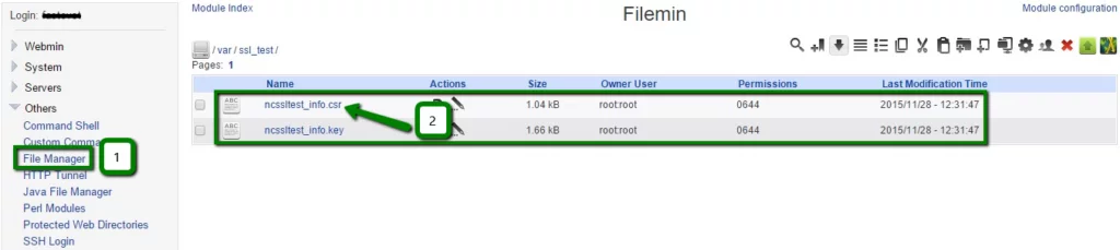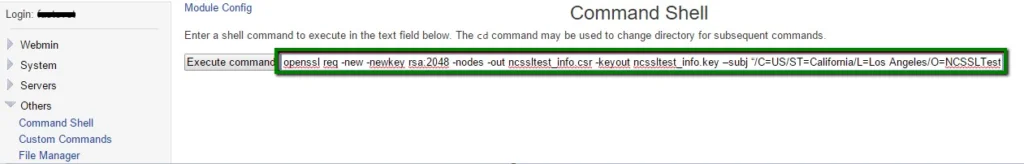 Let’s outline the steps for generating a CSR using the tools provided within the Webmin control panel interface: