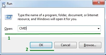 2.1. Open Cmd (Windows command line). To do this, press win+R on your keyboard. Then type cmd and click OK.