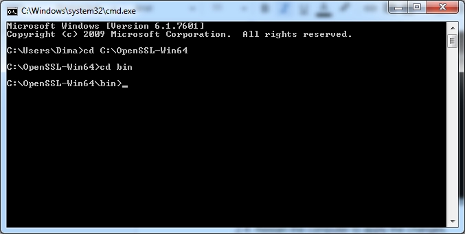 3.1. Go to the subfolder \bin of your OpenSSL folder by running this command: