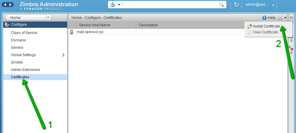 3) In the next window, click on Certificates and pick the option Install Certificate: