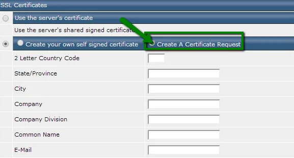 - Select the option Create a Certificate Request, enter the required information in all fields, and click Save.