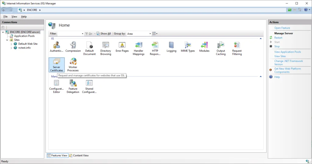 2) Double-click Server Certificates in the central menu.